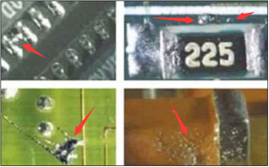 再流焊接中焊膏中助焊剂的激烈排气可能引起熔化焊点中的小爆炸,钎料颗粒在高温中的飞溅就可能发生。从而促使钎料颗粒在再流腔内空中乱飞,飞溅在PCB上形成锡珠粘附。当PCB材料内部夹有潮气时,和助焊剂排气有相同的效果。类似地,PCB板表面上的外来污染也是引起溅锡的原因。